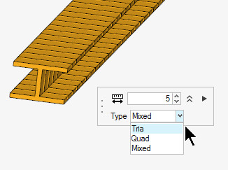 Bir boyutlu (1D) elemanı seçtikten sonra, eleman boyutu ve türünü (quad, tria) seçiniz.