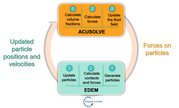 Altair CFD (AcuSolve) ve DEM (Altair EDEM) yazılımları için bağlatının nasıl çalıştığına dair bir örnek aşağıda verilmiştir.