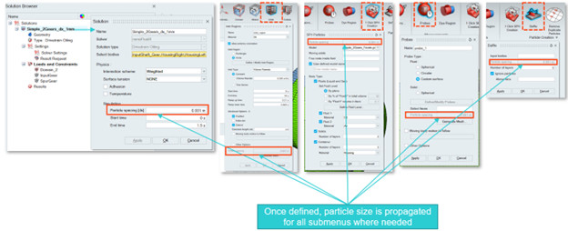 Önceden, parçacık çözünürlüğünün (dx) çeşitli konumlarda tanımlanması gerekiyordu, ancak şimdi kullanıcıdan çözünürlüğü yalnızca bir kez tanımlaması isteniyor. Kullanıcı hatalarını ortadan kaldırmanın yanı sıra, bu iyileştirmenin diğer çözünürlük senaryolarının daha kolay keşfedilmesi gibi iş akışı için başka faydaları da vardır.