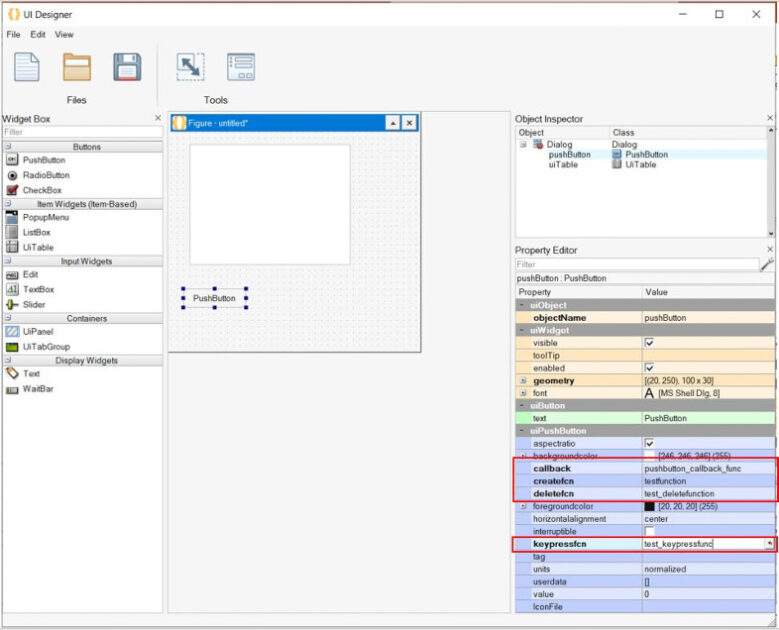 Geri arama fonksiyonları keypressfnc, deletefnc ve createfnc artık UiTable, UiPanel, UiTabGrp ve Text (görüntüleme widget’ı) hariç tüm widget’lar için özellikler panelinde kullanılabilir.