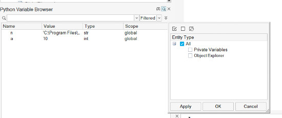 Artık “Python Variable Browser”nda özel değişkenleri gizleyebilir ve gösterebilirsiniz.