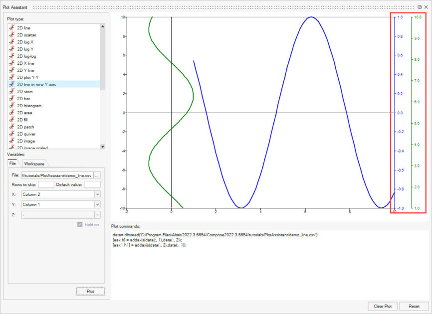 Yeni Y ekseni çizim türüne yeni bir 2D çizgi eklendi. Verilen veri kümesini, mevcut bir 2B çizimin sağ tarafındaki yeni bir dikey eksende çizer.