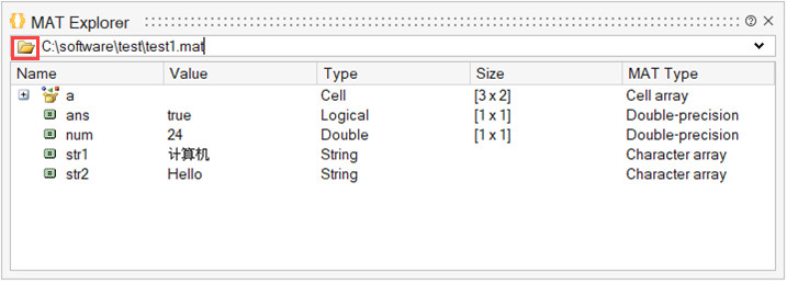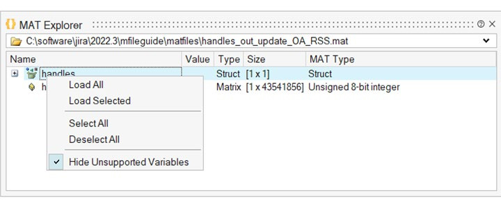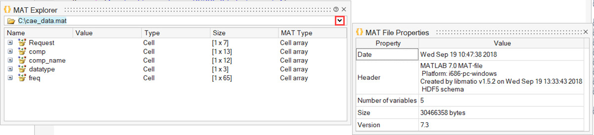 MAT Explorer, bir .MAT dosyasının içeriğini görmek ve değişkenleri bir OML ( Compose- Open Matrix Language ) oturumuna aktarmak için görsel bir yol sağlayan kullanıcı arayüzüdür.