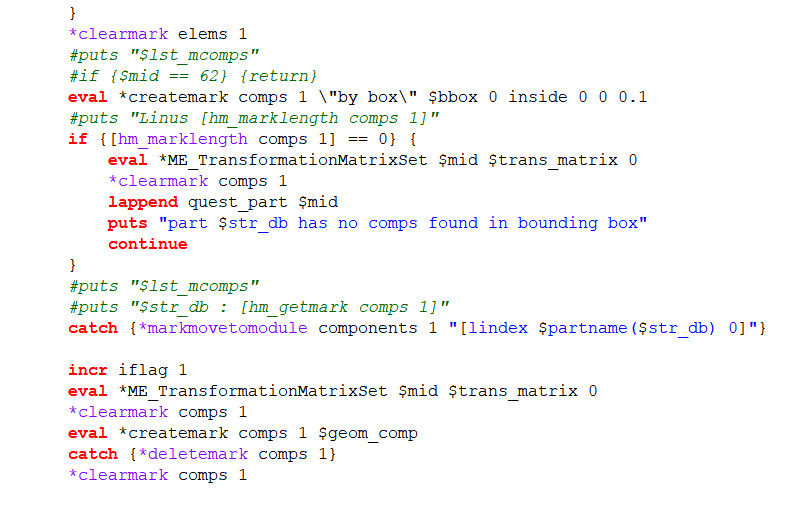 Altair HyperMesh ve Altair HyperView komutları otomatik olarak tanınır ve renk kodludur.
