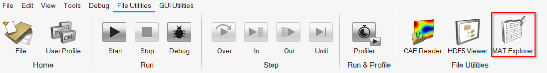 MAT Explorer aracını File Utilities şeridinden açabilirsiniz