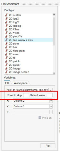 - Plot Assistant, bir dosya seçildiğinde atlanacak satır sayısını otomatik olarak belirlemeye çalışır.
