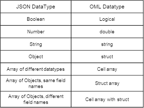 - jsondecode: JavaScript Object Notation (JSON) formatındaki bir dizeyi OML nesnesine çözümler.