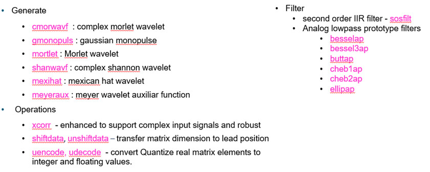 Sinyal işleme fonksiyonları için yeni komutlar eklendi.