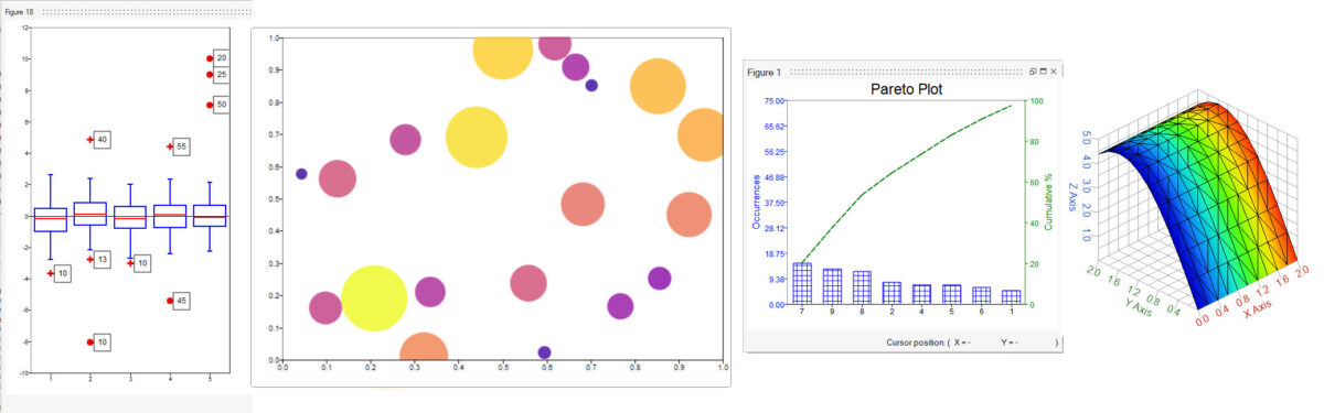boxplot, bubblechart, triplot, trimesh, trisurf, pareto plot