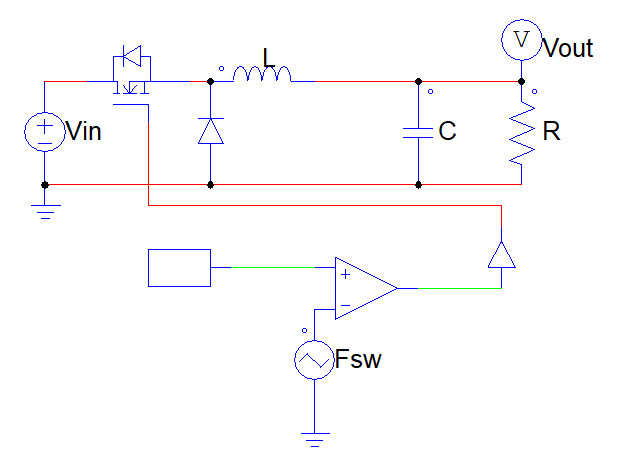 Kullanacağımız PSIM Şematik dosyası (.psimsch) basit bir buck dönüştürücüdür: Güç elektroniğinde çok yaygın olan bir DC – DC dönüştürücü. Bir yüke uygulanan voltajı girişine göre düşürürken akımı artırır.