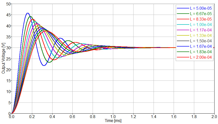 Bu grafikten, daha yüksek bir endüktansın daha yüksek bir yerleşme süresi pahasına daha az aşma ile sonuçlandığını görebiliriz. Bunu kendi şemalarınızda kullanın ve tüm bu simülasyonları eşzamanlı olarak nasıl çalıştıracağınızı öğrenmek için bir sonraki yazımızla devam edin!