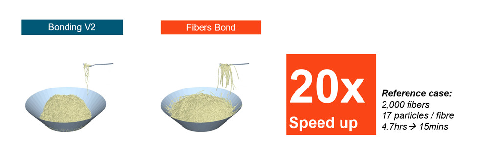 EDEM’e meta-parçacıkların eklenmesinden bu yana, esnek liflerin daha doğru ve kararlı bir şekilde modellenmesini sağlayacak özel bir lif modeli talep ediliyordu. EDEM 2025 ile gelen Fibers Bonding Model, silindirik kesitli, eğimli ve heterojen liflerin rijitliğini hassas bir şekilde hesaba katabiliyor. Lif boyunca değişen kalınlık ve malzeme özellikleri de bu modelle temsil edilebiliyor. Ayrıca bükülmeden kaynaklanan lif kırılması ve plastik deformasyon gibi etkiler de modellenebiliyor.