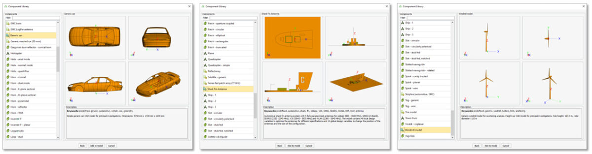 Bileşen kütüphanesine aşağıdaki model ve antenler eklenmiştir: