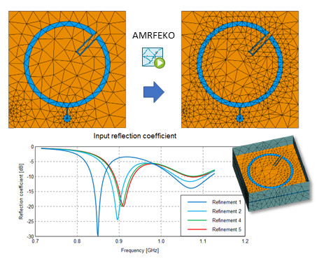 FEM ve MoM/FEM çözümleri için hata tahminlerine dayalı otomatik uyarlanabilir mesh iyileştirme sağlayan yeni bir araç (AMRFEKO – Automatic Adaptive Mesh Refinement) artık mevcuttur. Tamamen otomatik olan bu araç, bir komut istemcisinden veya Feko GUI’lerinden herhangi birinden başlatılabilir ve ayrıca HPC kaynaklarında RUNFEKO’ya benzer bir şekilde kullanılabilir.