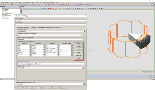 Karmaşık bir sargı yolunu temsil etmek için kullanılan “Composed” tipindeki Non Meshed Coil oluşturma penceresi, noktasal koordinatların çok kolay bir şekilde tanımlanmasına imkan tanıyacak şekilde geliştirilmiştir. Bu şekilde kullanıcılar, elektrikli makinelerin sargılarını tasarlarken zamandan büyük oranda tasarruf sağlayacaklardır.