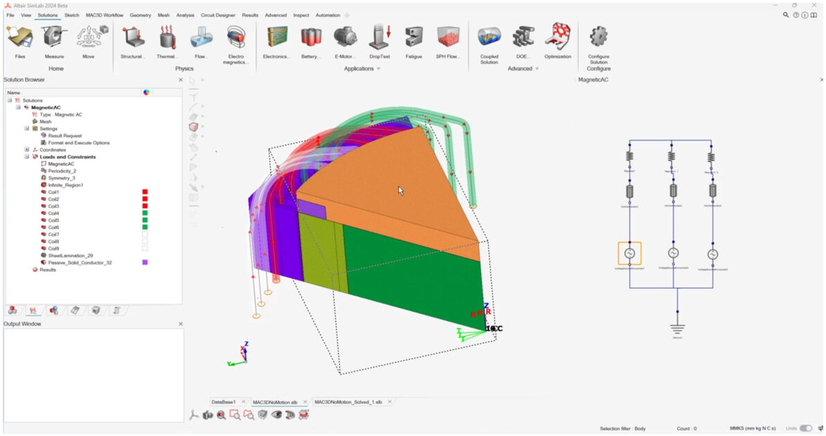 Bir motoru 3D olarak modellerken karşılaşılan zorluklardan biri de sargıların modellenmesidir. Altair Flux‘un önemli bir özelliği, büyük doğruluğu korurken mesh boyutunu ve çözme sürelerini azaltacak meshsiz bobinler kullanmaktır. Altair SimLab‘de bunları doğrudan bir CAD dosyasını içeri alırken oluşturmak için yeni bir otomasyon prosedürü önerilmektedir. Otomasyonun bir başka örneği de belirli bir sargı konfigürasyonuna karşılık gelen elektrik devresinin oluşturulmasıdır. Bu, hairpin sargı tipine sahip bir makine tanımlarken önemli bir zaman kazandırır.