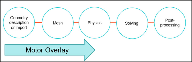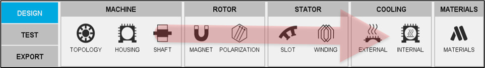 FluxMotor, motor modelinizi oluşturmak için kolay ve daha sezgisel bir iş akışı sunar. Geometri, seçilen belirli makine tipine ve şablona bağlı olarak kullanıcı tarafından girilen parametrelere göre tanımlanır. Testler sırasında bir parametre aracılığıyla kontrol edilebilmesine rağmen, meshin tanımlanmasına hiç gerek yoktur. Kullanıcıya sadece sarım düzenini ve bobin detaylarını tanımlamada yardımcı olmakla kalmayan güçlü bir sarım aracı, aynı zamanda farklı düzenleri hızlı bir şekilde değerlendirmek için bazı ölçümler de verir. Soğutma bölümü, kullanıcının farklı soğutma stratejileri tanımlamasına ve bunların motor sıcaklığı ve performansı üzerindeki etkilerini kontrol etmesine yardımcı olur. Makine için kullanılan malzeme, önceden tanımlanmış bir dizi bilinen malzemeden tanımlanabilir, ancak kullanıcı kendi malzemesini kütüphaneye ekleyebilir.
