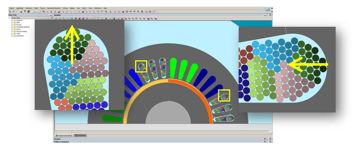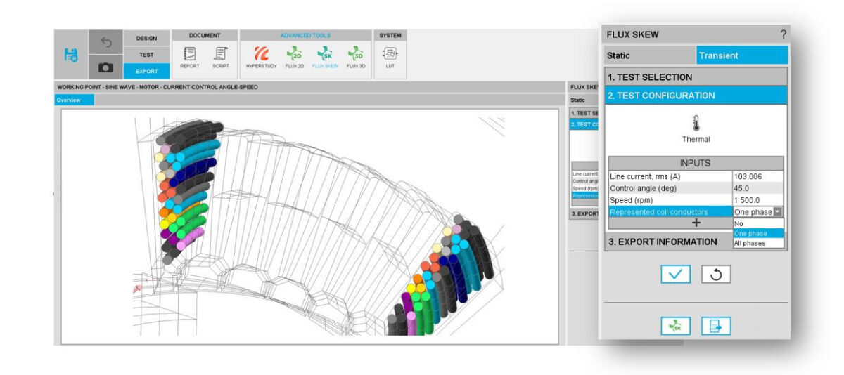 Stator veya rotor eğik olduğunda teller artık katı iletkenler olarak kabul edilebilir. Katı iletkenler, projeleri FluxMotor’dan Flux Skew’a aktarırken ve “Motor Factory“nin makine performansını hesaplarken dikkate alınacaktır.
