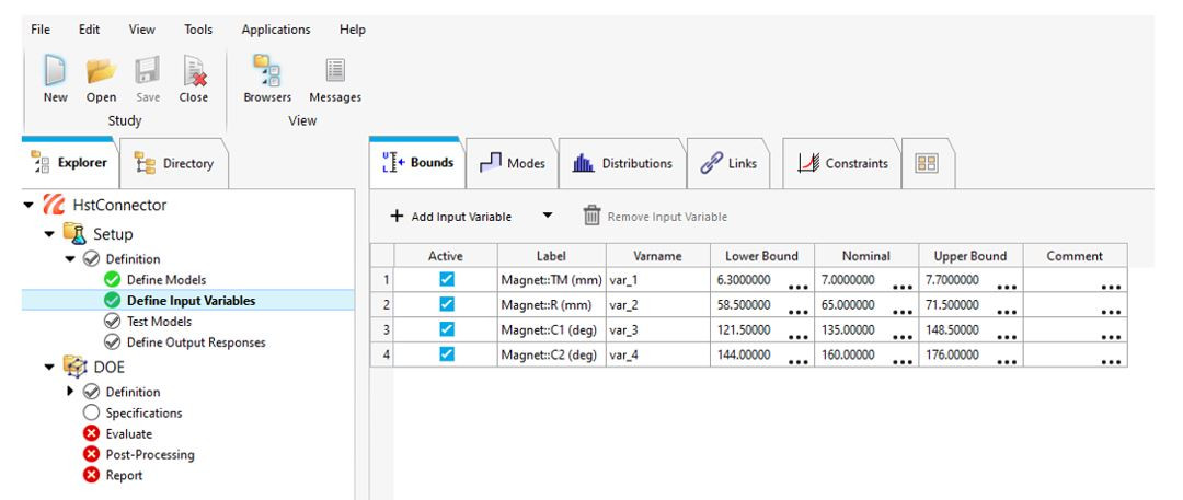 Çalışmalar, HyperStudy’de hemen başlatılabilir ve çalıştırılabilir. FluxMotor’da seçilen girdi değişkenlerinin yanı sıra çıkış yanıtları da otomatik olarak tanımlanır ve yüklenir.