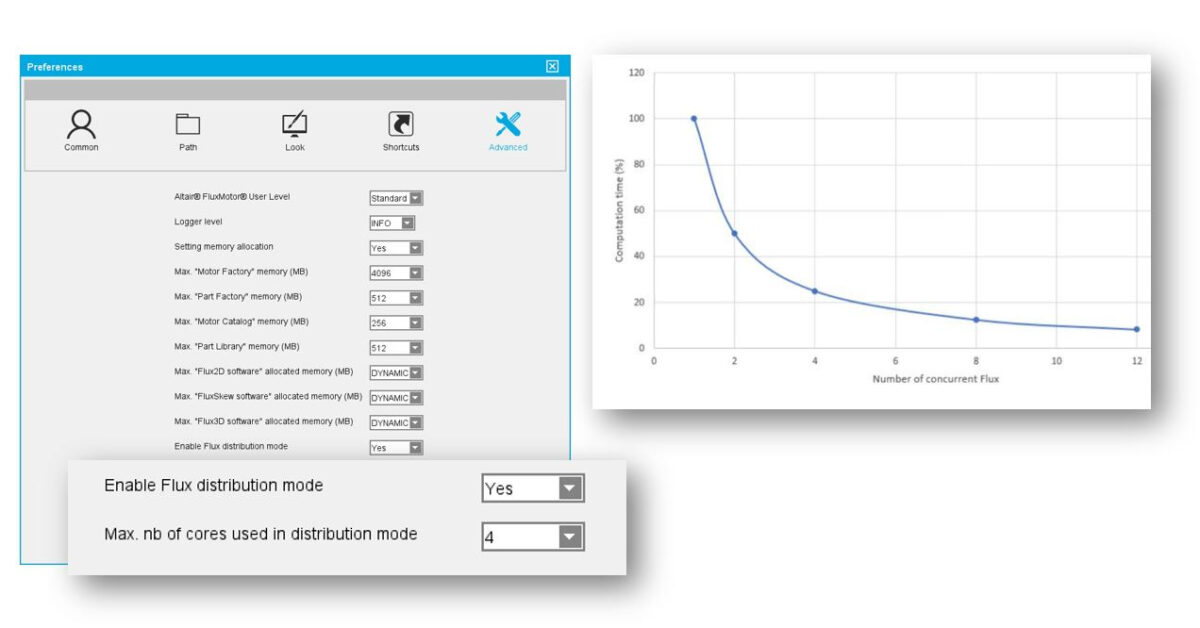 Altair FluxMotor‘daki bazı hesaplamalar için birçok sonlu eleman hesaplamasının yapılması gerekir ve performans haritalama gibi durumlarda bu hesaplamalar birbirinden bağımsızdır. Bu, sıralı yerine paralel olarak çalıştırılabilecekleri anlamına gelir ve bu da genel süreci hızlandırır. Bu, kullanıcının artık sadece kullanılacak maksimum çekirdek sayısını belirterek etkinleştirebileceği bir seçenektir.