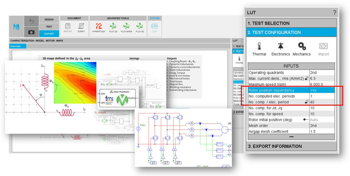 Sabit mıknatıslı senkron makineler ve senkron relüktans makineleri için, verimlilik haritalarının hesaplanması artık rotor konumu bağımlılığını dikkate alabilir ve bu da kesinlikle daha doğru sonuçlar getirir. Bu seçenek, Altair Twin Activate veya Altair PSIM gibi sistem düzeyinde simülasyon araçlarında kullanılmak üzere tablolar (1,2 veya 4 kadran için) oluşturulurken de kullanılabilir.