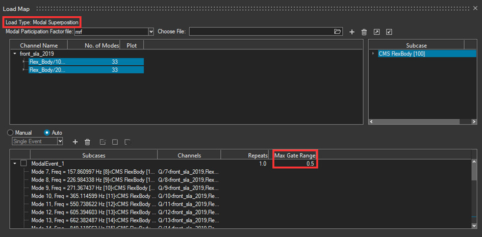 Küçük çevrimleri hesaplamaya dahil etmemek için kullanılan Max Gate Range tanımlaması Modal Superposition ve Transient analizler için desteklenir hale gelmiştir. Load Map aracında bulunan Max Gate Range parametresi ile bu tanımlama yapılabilmektedir.