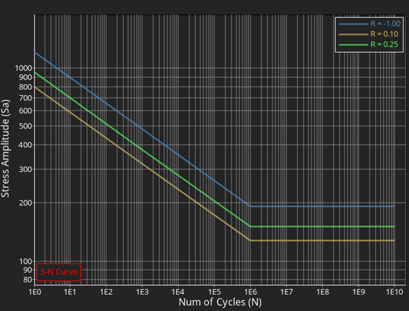 Farklı gerilme oranlarına karşılık gelen SN eğrilerinin tanımlanması desteklenir hale gelmiştir. Malzeme aracı, girilen SN malzeme eğrisinin gerilme oranını (R) gösterecek şekilde geliştirilmiştir. Bu geliştirme ile HyperLife, titreşimli çekme-basma testlerindeki malzeme eğrilerini destekler hale gelmiştir.