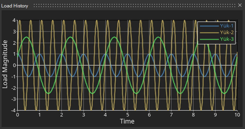 Load Map aracında tanımlanan yük girdileri, tek bir pencerede üst üste bastırılarak aralarında karşılaştırma yapılabilir hale gelmiştir. Bu özellik, zaman alanındaki yük girdilerini içeren durumlarda desteklenmektedir.