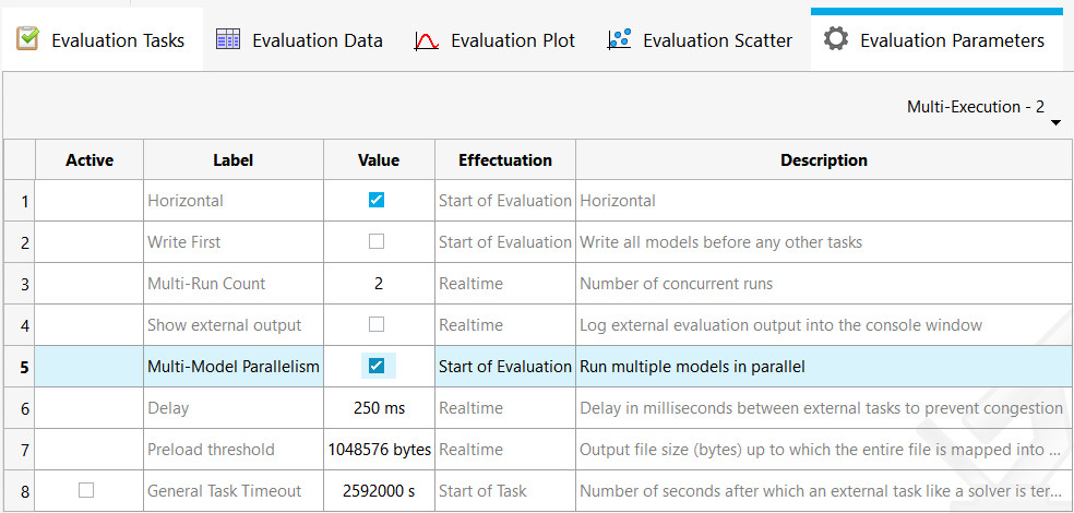 “Evaluate” de yeni bir seçenek olan “Multi-model Parallelism“, aynı anda birden fazla bağımsız modelin çalıştırılmasına izin verir. Hem “Multi-execution” hem de “Multi-model Parallelism” birleştirilerek ekstra bir zaman tasarrufu elde edilebilir.
