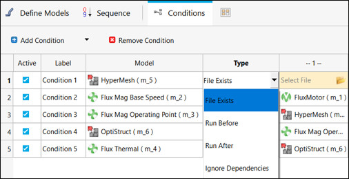 Define Models de, kullanıcının artık aşağıdaki gibi koşulları tanımlayarak modelin çalıştırılma sırasını kontrol etmesine izin verilmektedir: