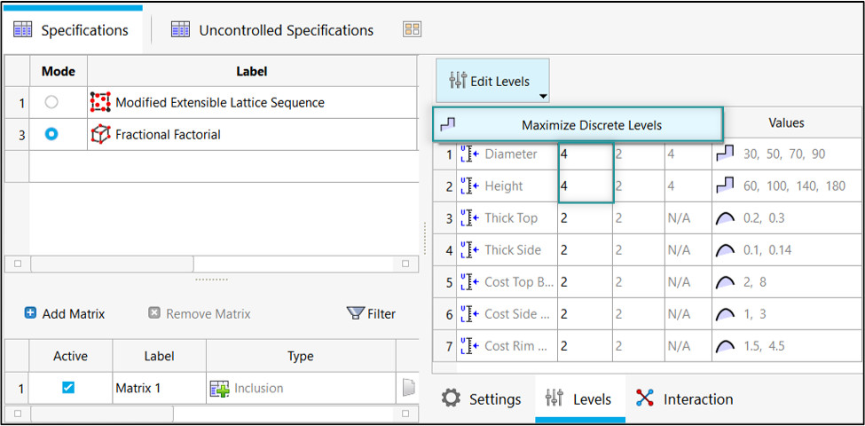 DOE’deki ayrık değişkenler için seviyeleri en üst düzeye çıkarın