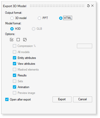 Altair HyperView 2024.1 versiyonu 3D simülasyon sonucunu HTML dosyalarına aktarmak için bir yöntem sunar.