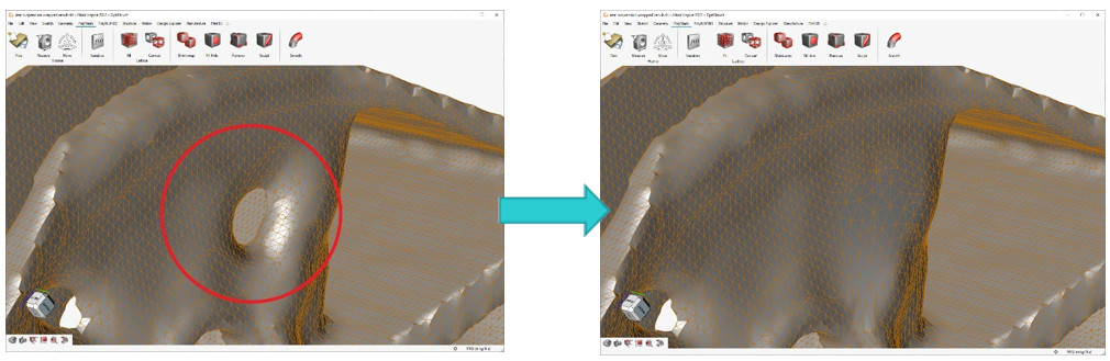 PolyMesh şeridindeki yeni delikleri doldur (Fill Holes) aracı, mesh parçalarındaki delikleri doldurmanıza olanak tanır.
