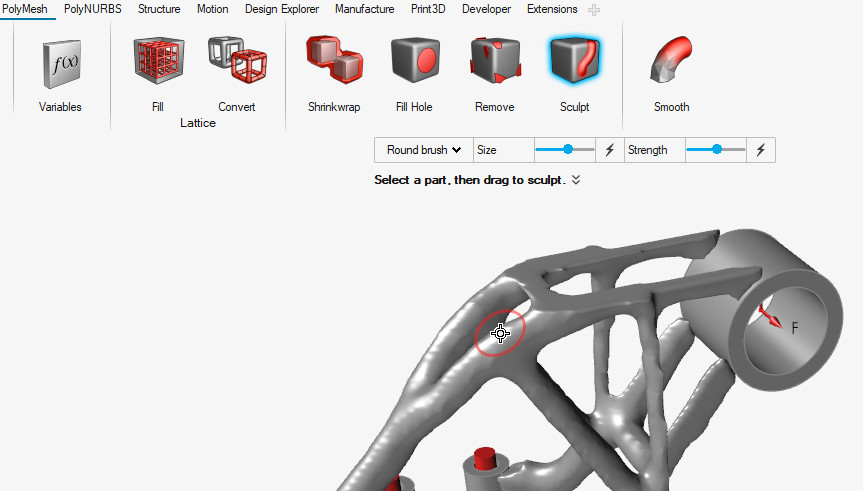 PolyMesh şeridindeki yeni şekillendirme (sculpt) aracı, birkaç fırça aracından birini kullanarak orijinal meshi değiştirmenize olanak tanır.