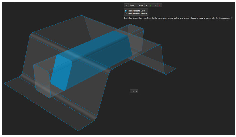 Intersect Surfaces, katıları veya yüzeyleri kesiştirerek ve isteğe bağlı olarak bir yüzey kümesini koruyarak veya kaldırarak şekiller oluşturmaya yönelik yeni bir araçtır. Kesişen katı veya yüzey parçalarından otomatik olarak bir manifold katı oluşturma seçeneği içerir.
