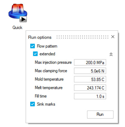 Artık bir modeli hızlı bir şekilde doğrulamak istiyorsanız, yalnızca birkaç saniye içinde hızlı bir analiz çalıştırmak için Basic Mode kullanabilirsiniz. Yolluk sistemi ve kalıplama bileşenlerini içeren daha ayrıntılı bir analize ihtiyacınız varsa, Advanced Mode kullanabilirsiniz.
