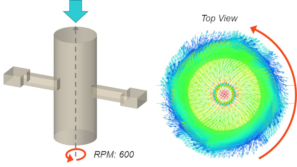 Yeni santrifüj kalıplama metodu, merkezkaç kuvveti sayesinde kimyasal çözeltinin yüksek hızda dönen silindirik kalıba nasıl döküldüğünü ve kalıbın nasıl doldurulduğunu göstermektedir.