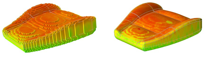 Sonuçlar 2022 versiyonuyla birlikte, orijinal voksel meshden tetrahedral meshe eşlenir. Bu, sonuçların görselleştirilmesini iyileştirir ve şekil deformasyonunu önler.