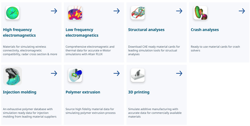 Altair Malzeme Veri Tabanı (AMDC), sürdürülebilir, verimli ve hafif tasarımların oluşturulmasını sağlamak için 400’den fazla tedarikçiden güncel 90.000’den fazla malzeme özellikleri sağlar.