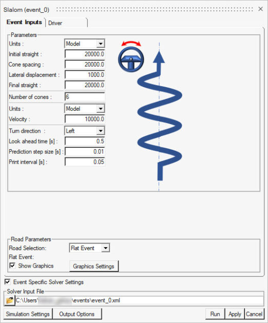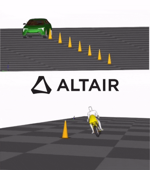 Altair MotionView, slalom manevrasında araçların performansını değerlendirmek için yeni bir sürüş senaryosu içerir. Slalom Senaryosu, aracı konilerin etrafında alternatif yönlerde bir dizi dönüşle hareket ettirerek araç durum değişkenlerini, lastik kuvvetlerini, süspansiyon davranışını ve diğer performans göstergelerini ölçer.