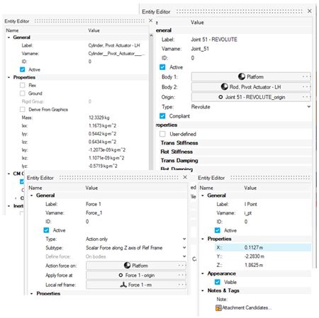 Altair MotionView‘in yeni arayüzü, düzenlenecek varlık özelliklerini listeleyen bir Varlık Düzenleyicisi (Entity Editor) ile birlikte gelir. 2022’de mevcut olanlara ek olarak, 2022.1 için aşağıdaki varlıkların artık bir düzenleyicisi vardır: