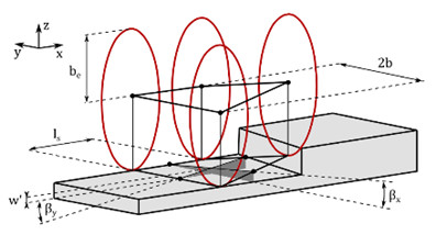 3D Kapsayıcı (Enveloping) temas modeli, yol profilini taramak için bir dizi elips kullanır ve böylece Şekil 3’te gösterildiği gibi deforme olabilen bir arazinin düzensiz profiline yerel olarak yaklaşan etkili bir eşdeğer yol düzlemi üretir.
