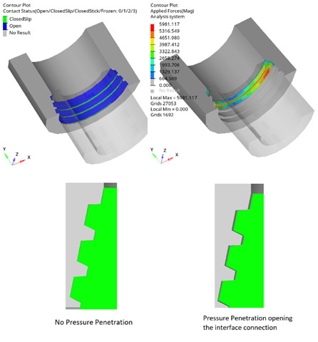 Bu yetenek, iki parça arasındaki temas arayüzünün (örneğin dişli cıvatalar) iki ucundan birinde veya her iki ucunda sıvı basıncına sahip olduğu uygulamaları simüle etmede yardımcı olur.