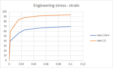 Mevcut hızdan bağımsız plastisiteye ek olarak, Altair OptiStruct 2022’den başlayarak, gerilim-gerinim verilerini şu şekilde tanımlayabilirsiniz: