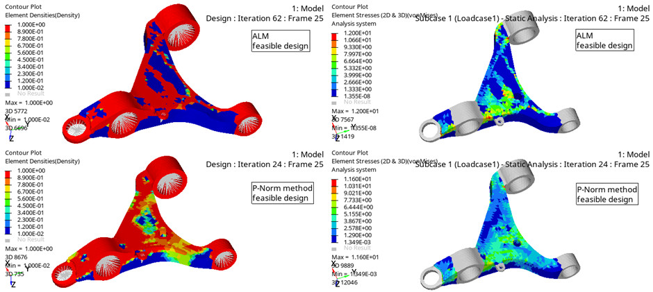 Aşağıdaki görüntü, ALM ve P-norm yöntemleri arasındaki nihai tasarımların bir karşılaştırmasını göstermektedir.