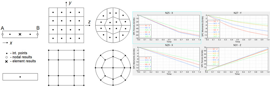Entegre kiriş kesitleri artık ROD ve BAR tipi PBEAML kirişleri için kullanılabilir. Bu, hem implicit hem de explicit doğrusal olmayan analiz için desteklenmektedir. İzotropik, kinematik ve karma sertleşme (MATS1) için desteklenmektedir.