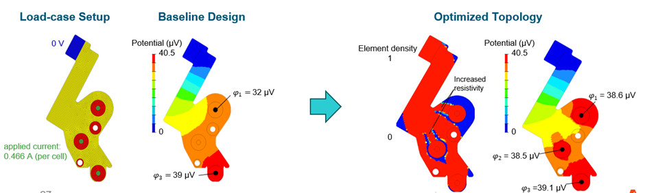 Optimizasyon artık elektriksel analize dayalı olarak mevcuttur ve diğer analiz türleriyle birleştirilebilir. Elektriksel Potansiyel (ELPO) ve Elektriksel Uyumluluk (ELCOMP) yanıtları elektriksel optimizasyon için kullanılabilir.