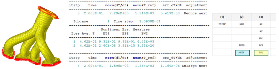 Varsayılan olarak kapalıdır ve TSTEP kartında MREF=1 olarak ayarlanarak etkinleştirilebilir. Doğrusal (varsayılan Newmark-Beta) ve doğrusal olmayan (varsayılan Backward Euler) geçici termal analizler için desteklenir.