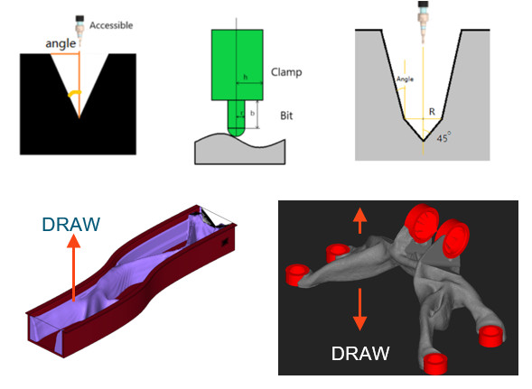 Döküm parçaları için çekim açısı (draft) elde etmek amacıyla frezeleme kısıtlamaları kullanılabilir.