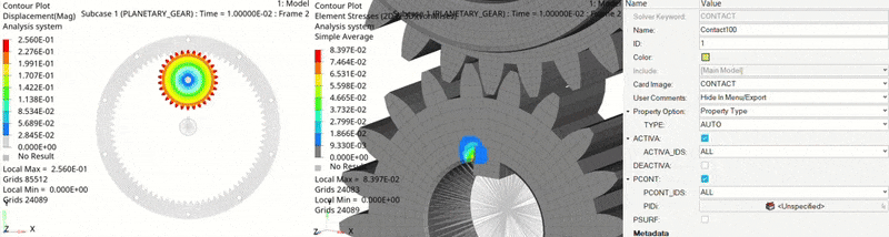 Implicit doğrusal olmayan analizler (nonlinear) için otomatik temas (auto-contact) artık desteklenmektedir. Explicit analizlerdeki otomatik temas özelliğinde olduğu gibi, implicit analizlerde de TYPE alanının AUTO olarak ayarlanması ile otomatik temas etkinleştirilir. (NLSTAT/NL-Transient)